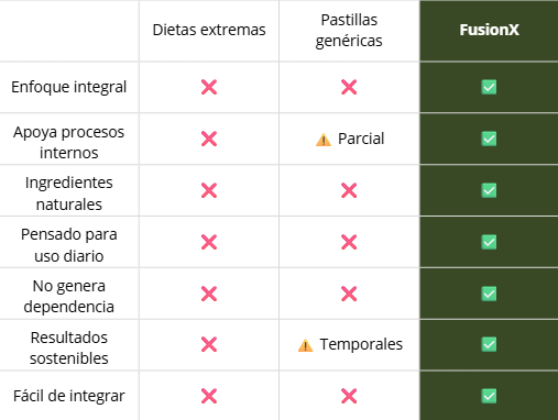No. FusionX es un suplemento alimenticio diseñado para acompañar el bienestar diario. No sustituye tratamientos médicos ni una alimentación equilibrada.